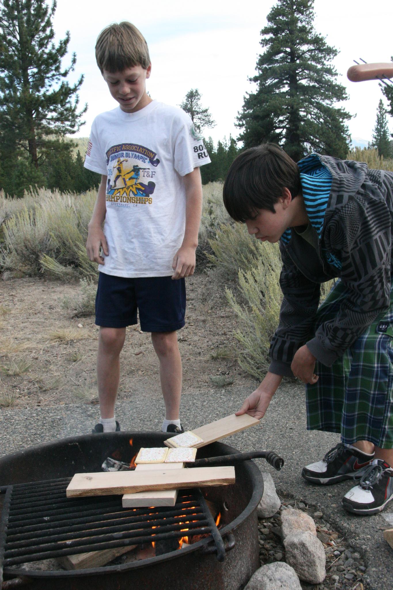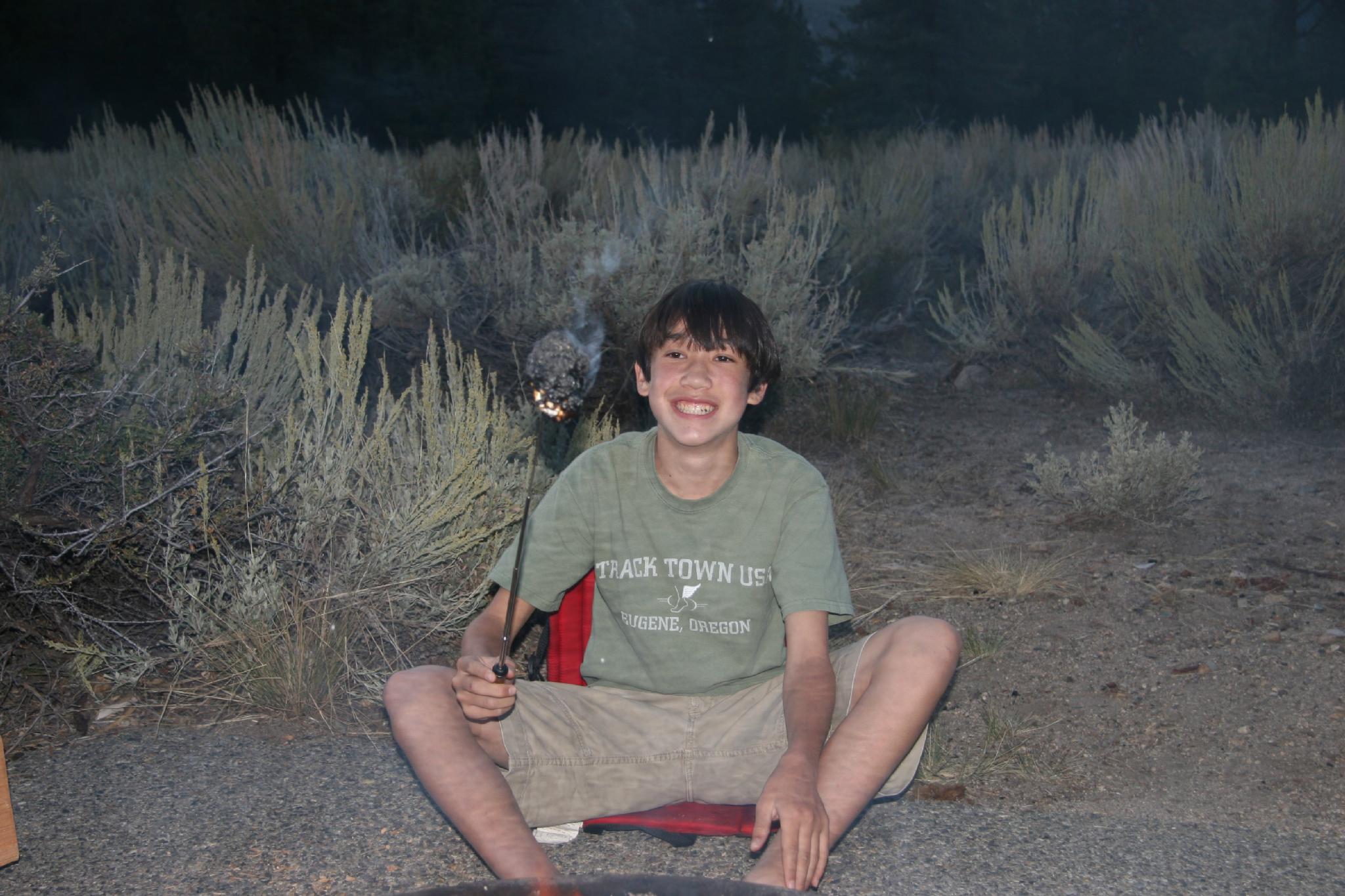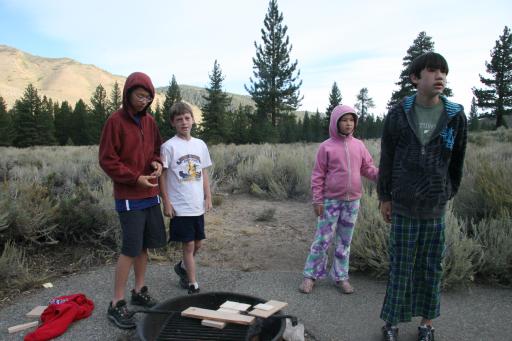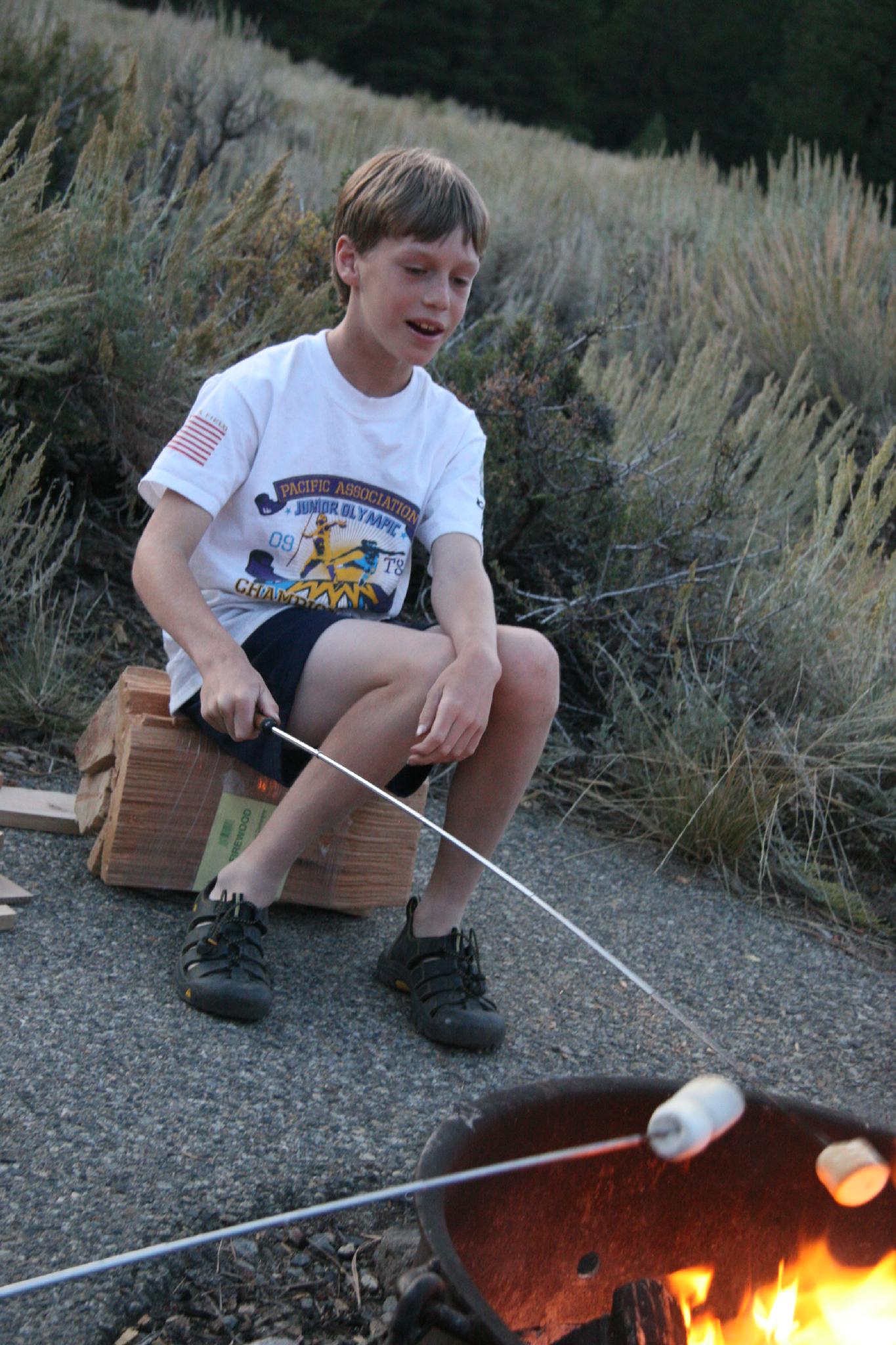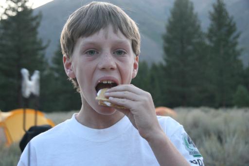 Making smores in camp