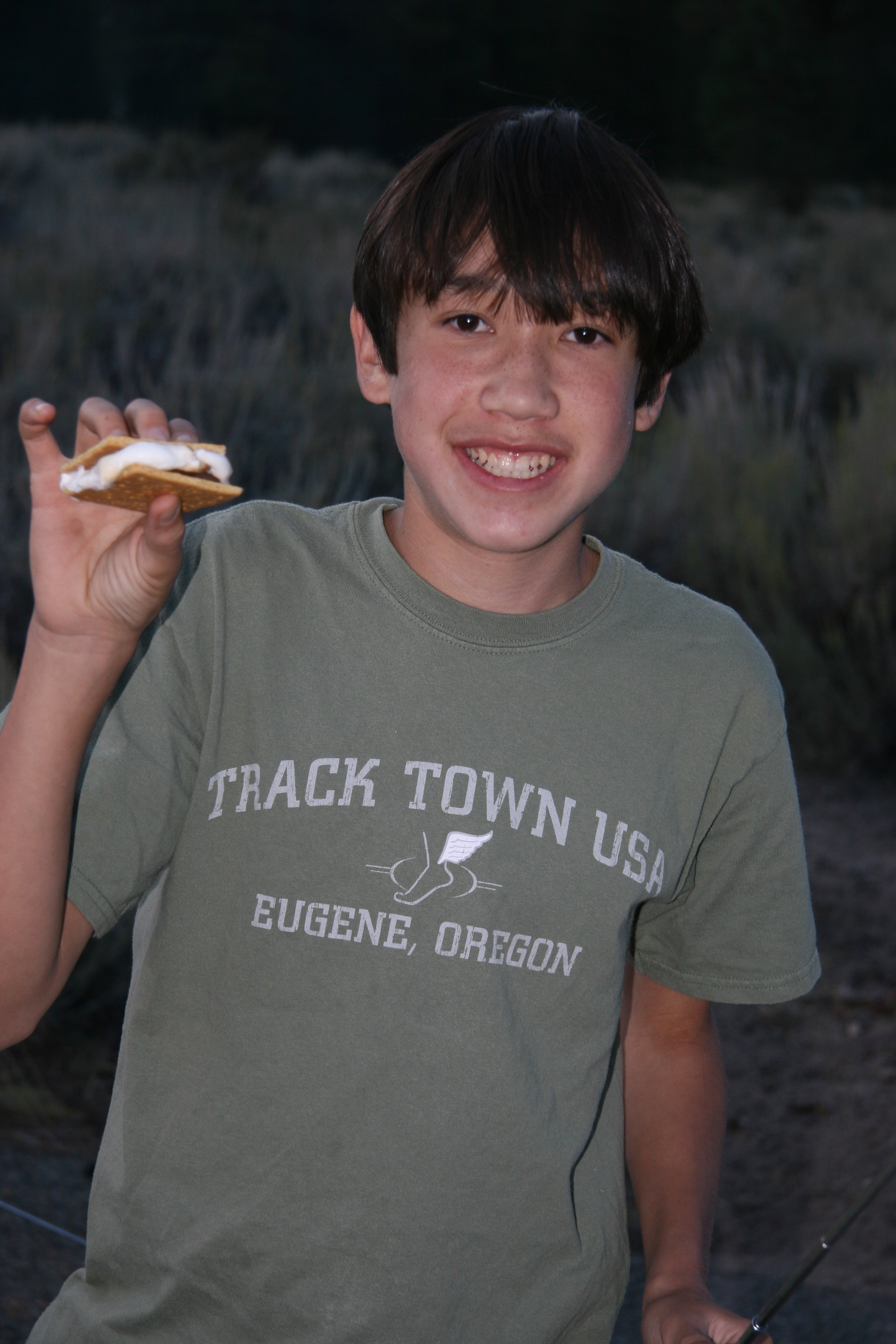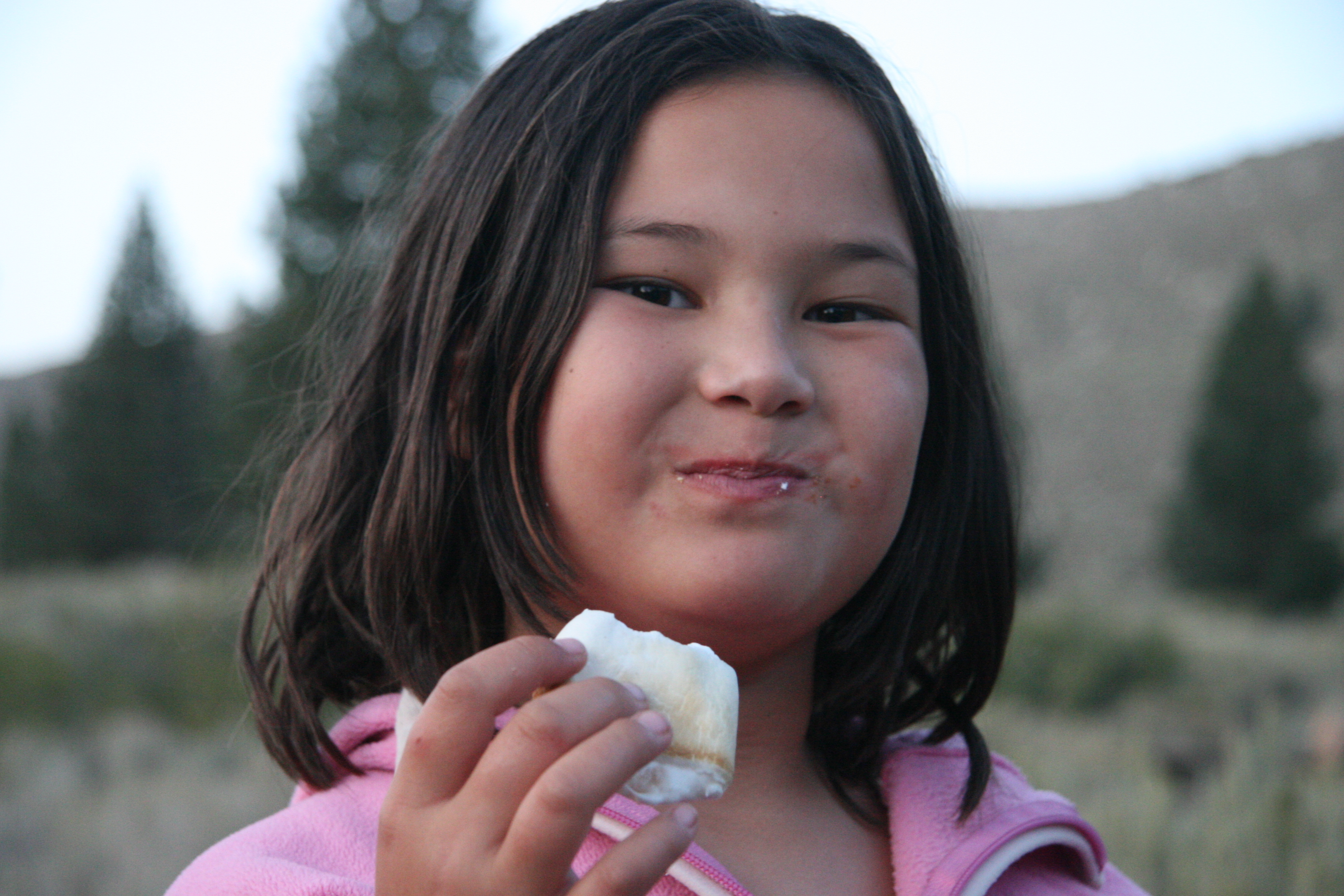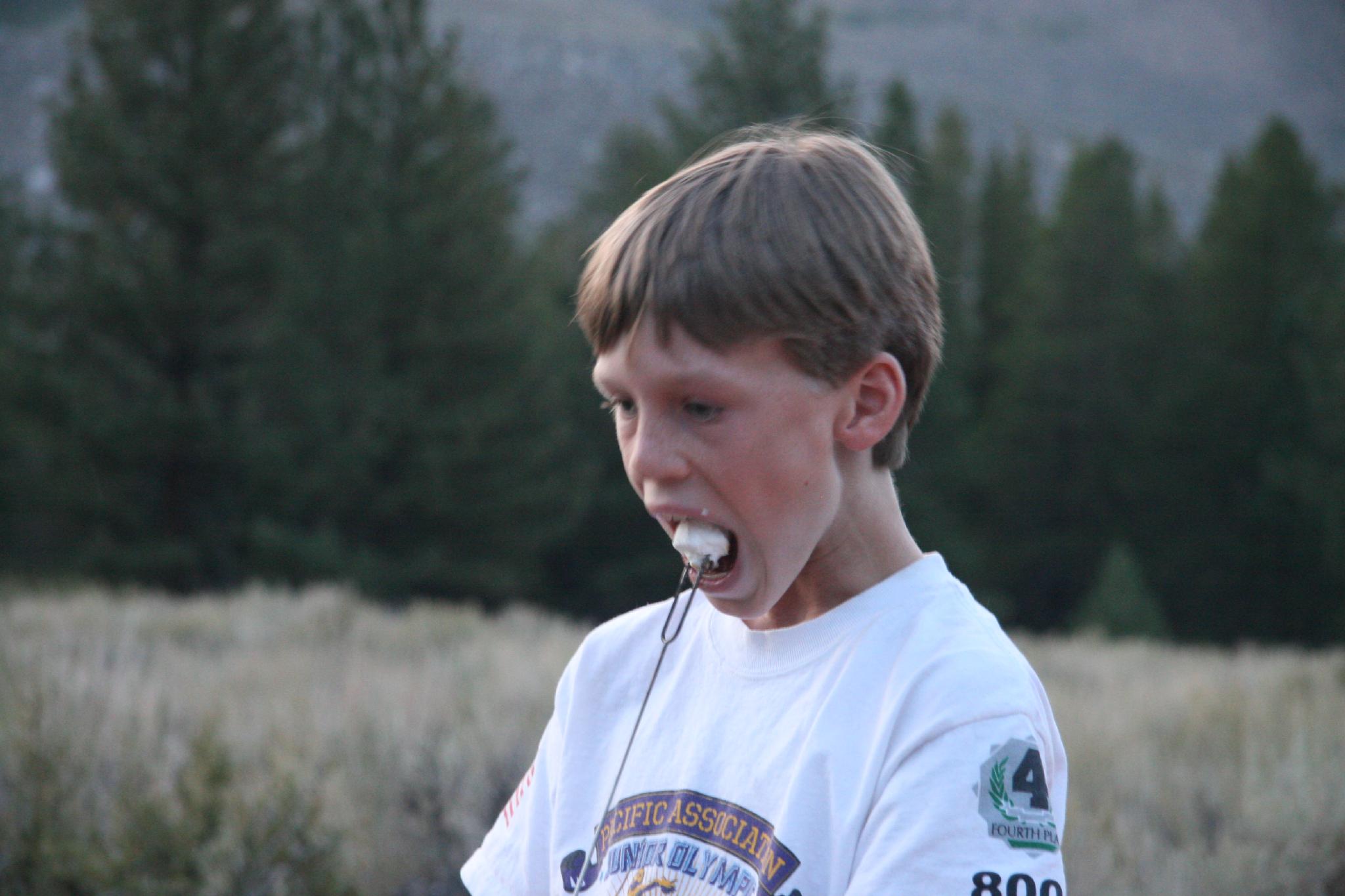 Making smores in camp