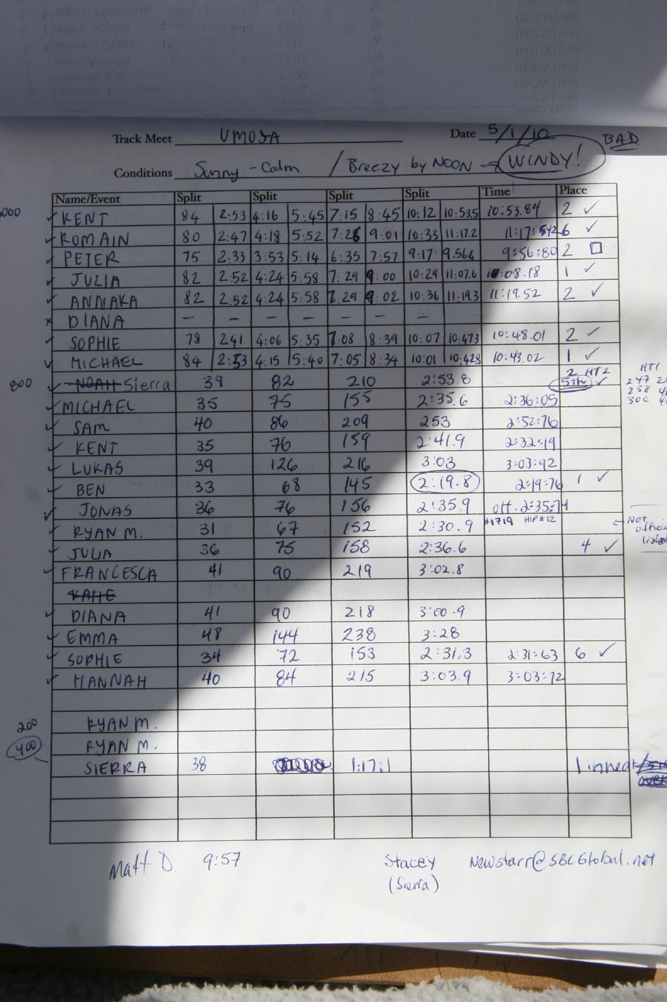 Cool and windy meet at Santa Clara High School on May 1st and 2nd 2010.